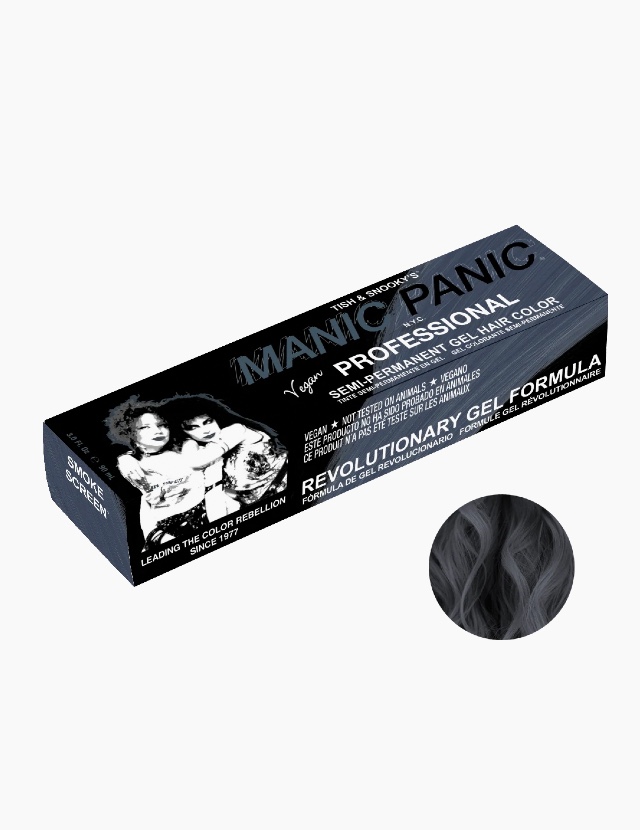 Smoke Screen® colore diretto semi-permanente in gel – grigio intenso. Può essere utilizzato da solo o miscelato per creare sfumature metalliche. Smoke Screen™ deve essere applicato su una base tonalizzata, priva di giallo. Eventuali sfumature gialle potrebbero creare un risultato alterato.